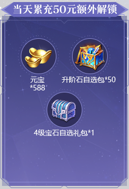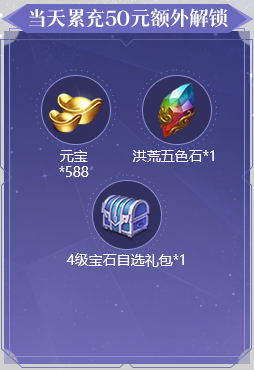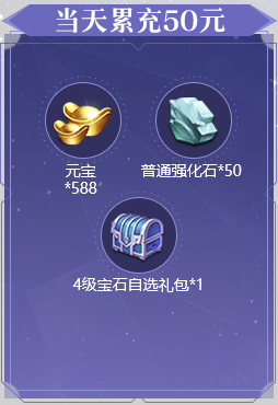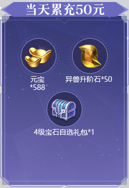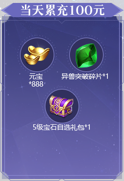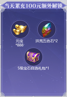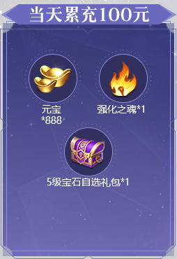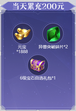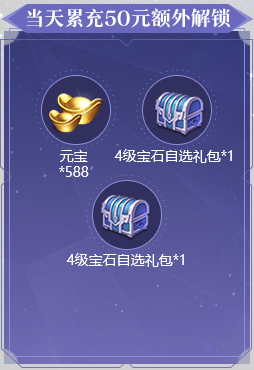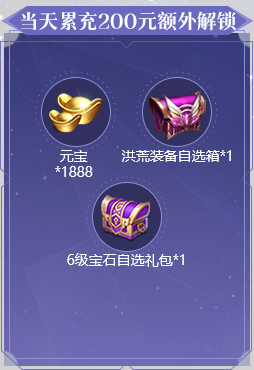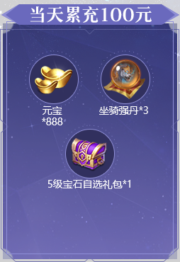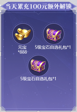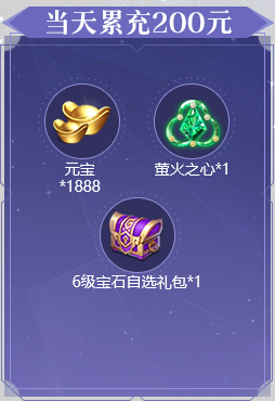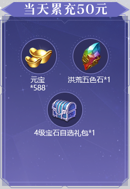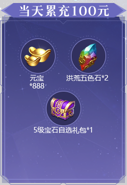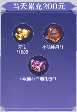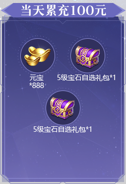 1、活动期间累充达到对应金额,可翻牌领取对应金额的礼包。