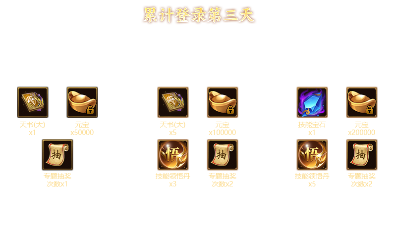 1、每日登录游戏领取登录奖励,可获得相对应的抽奖次数;活动期间每充值10元(实付),再送1次抽奖次数,上不封顶!2、活动期间获得抽奖次数和抽奖积分仅在活动期间有效,请尽快使用。